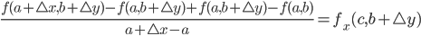 $\frac{f(x+\triangle x,y+\triangle y)-f(x,y+\triangle y)}{x+\triangle x-x} \longrightarrow f_x(x,y)$